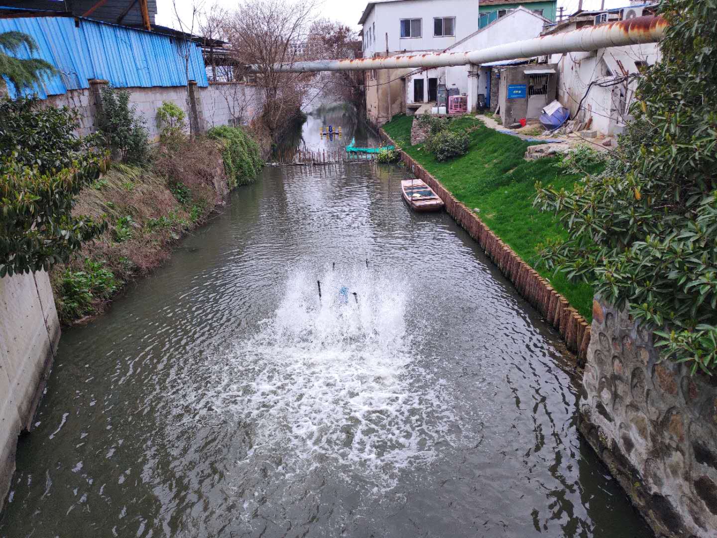 工程內(nèi)容:通過構(gòu)建高效微生物修復(fù)系統(tǒng)對河道水質(zhì)進(jìn)行改善提標(biāo),目前,已完成部分工程,水體黑臭現(xiàn)象已消除,整治效果得到業(yè)主方充分肯定,現(xiàn)進(jìn)入水質(zhì)提標(biāo)階段。